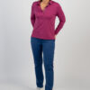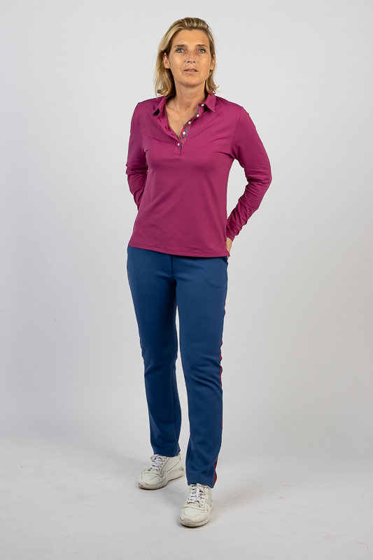 De polo heeft 5 knoopjes op een smalle vrouwelijke inleg.